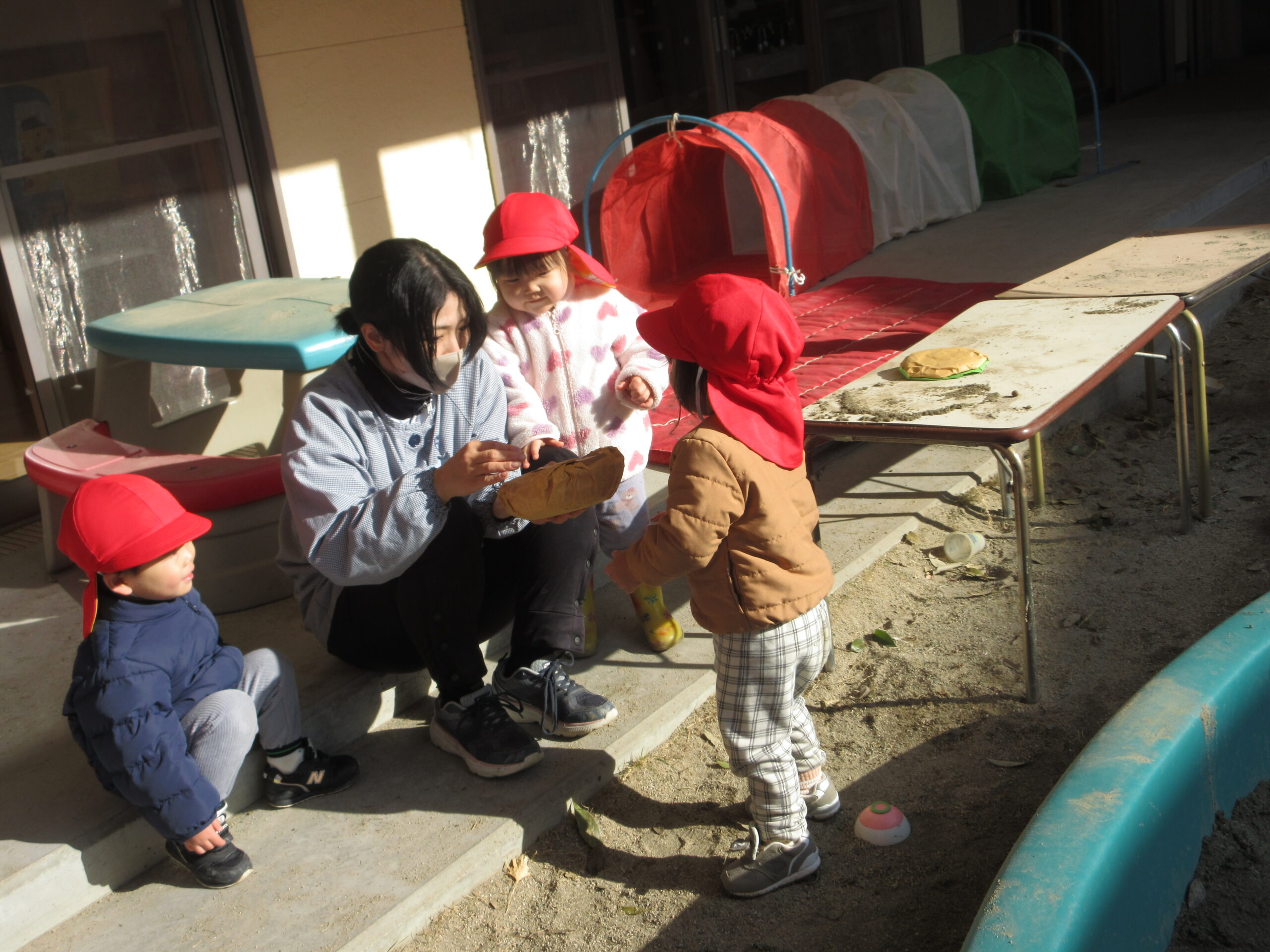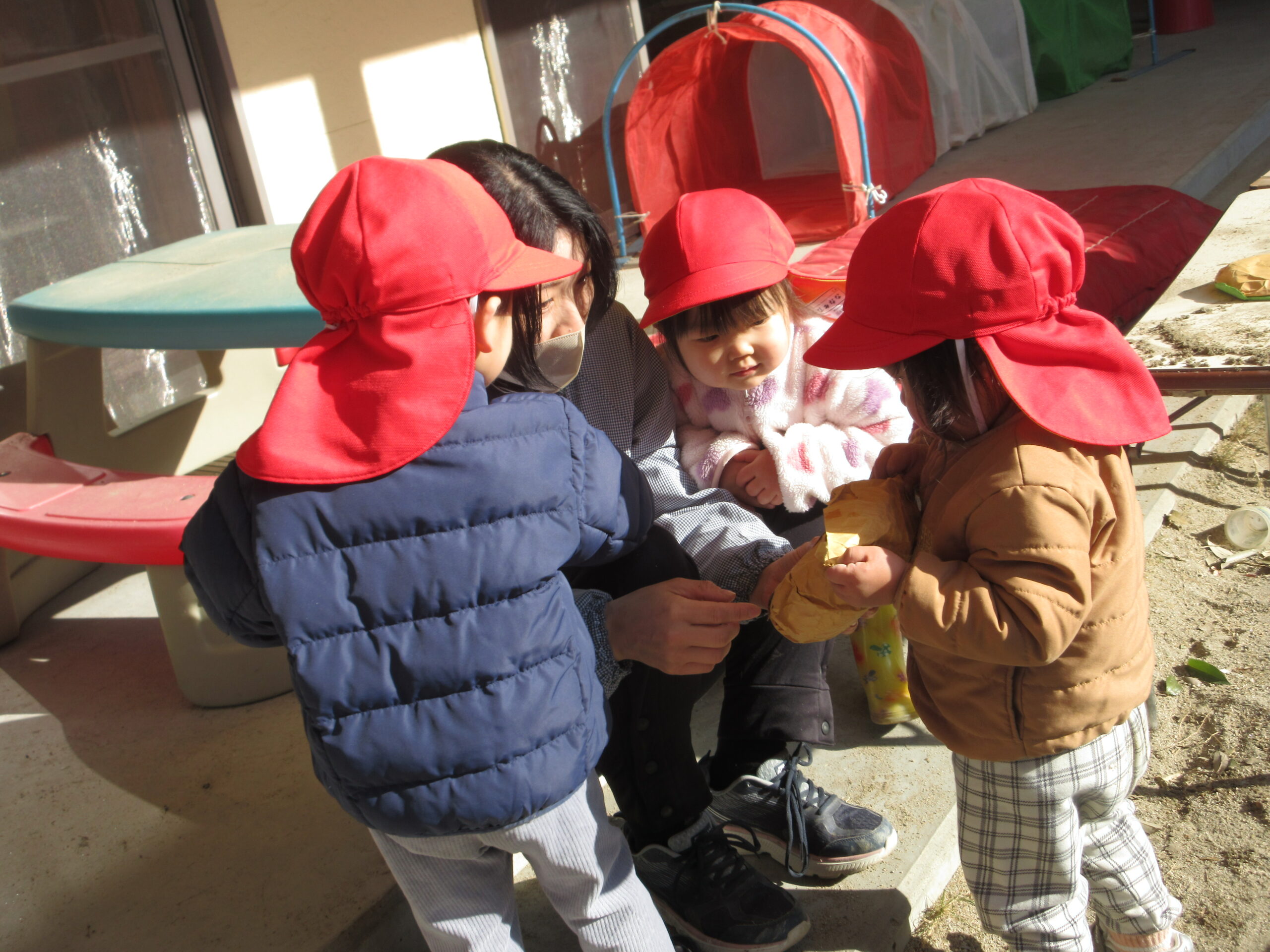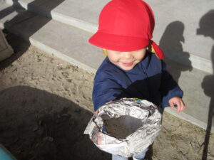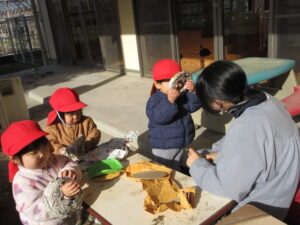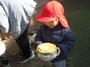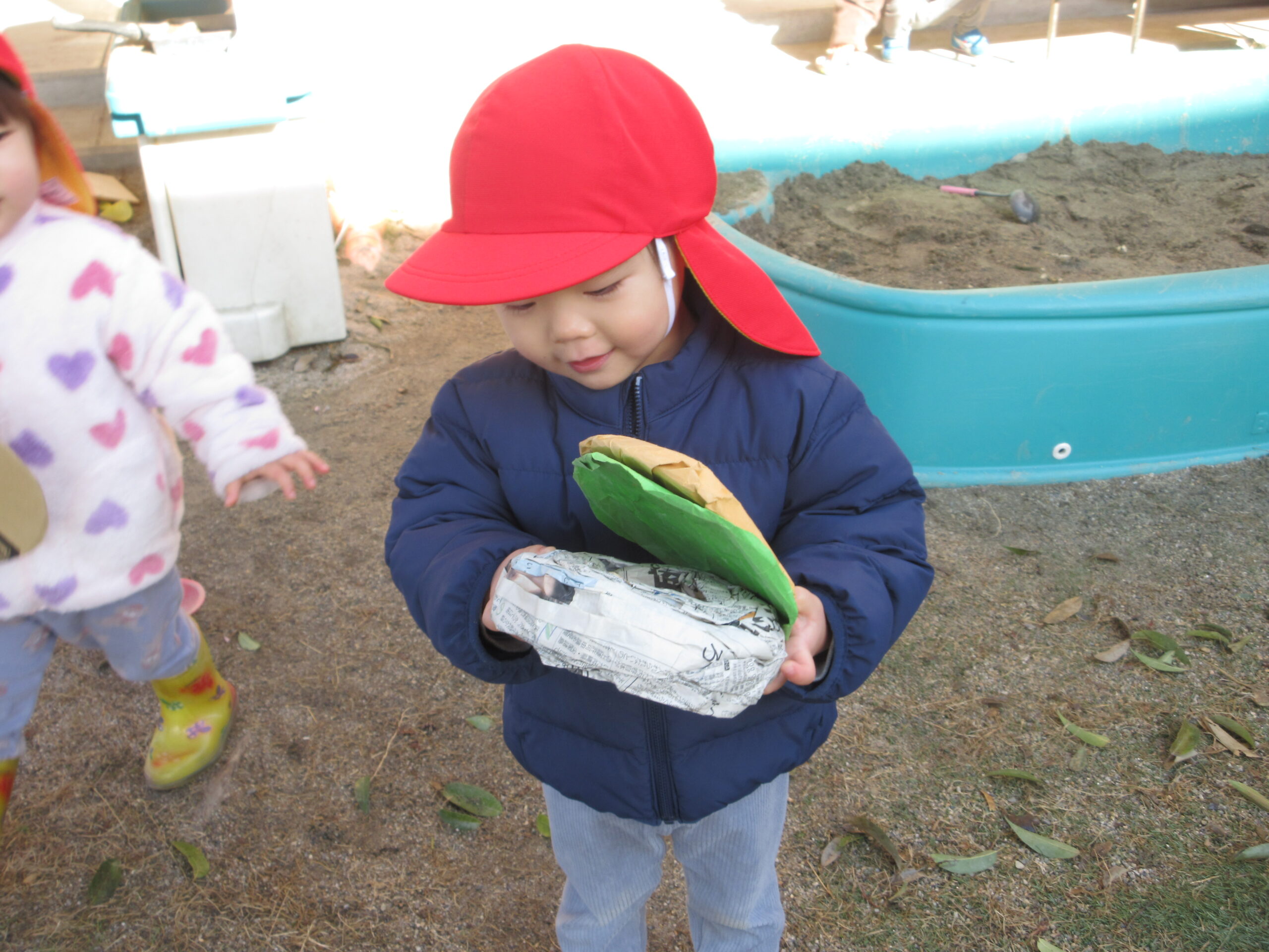 「何がでてくるのかなあ?」保育士も不思議そうにつぶやきます。