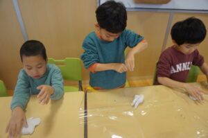 その後は紙粘土をおもちに見立ててコロコロと丸めました。
