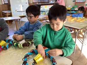 秋に地域の畑で収穫体験させていただいたさつまいののつるをほして