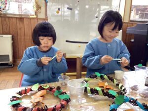 リースとカレンダーをもって、地域のお世話になっている方々に