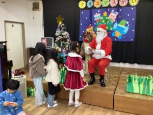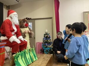 サンタさんは風邪をひいて声は出なかったけど、子どもたちの質問に答えてくれました。