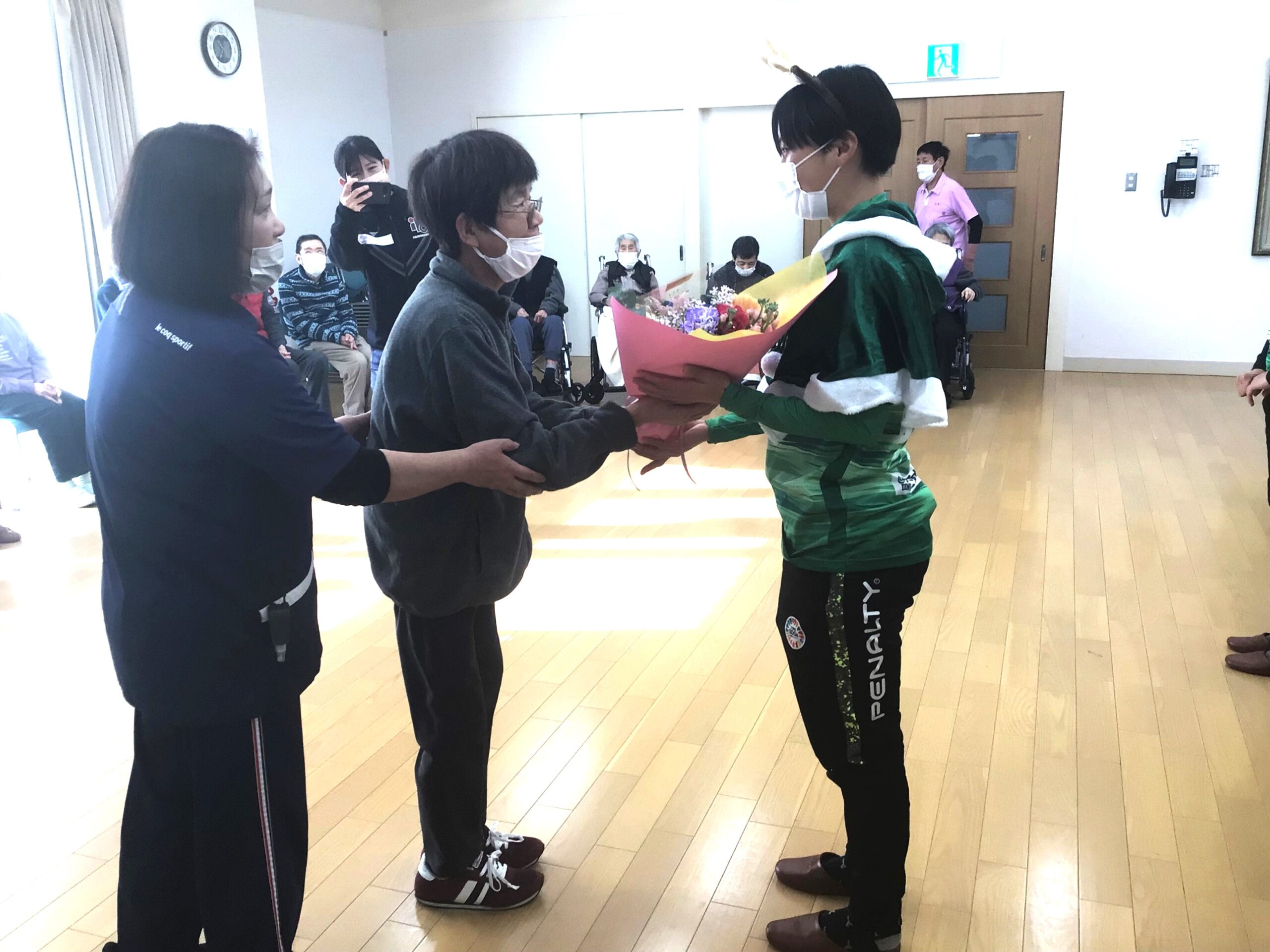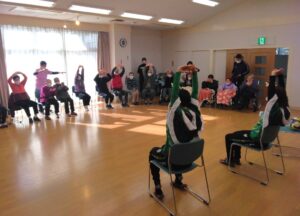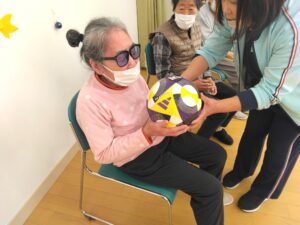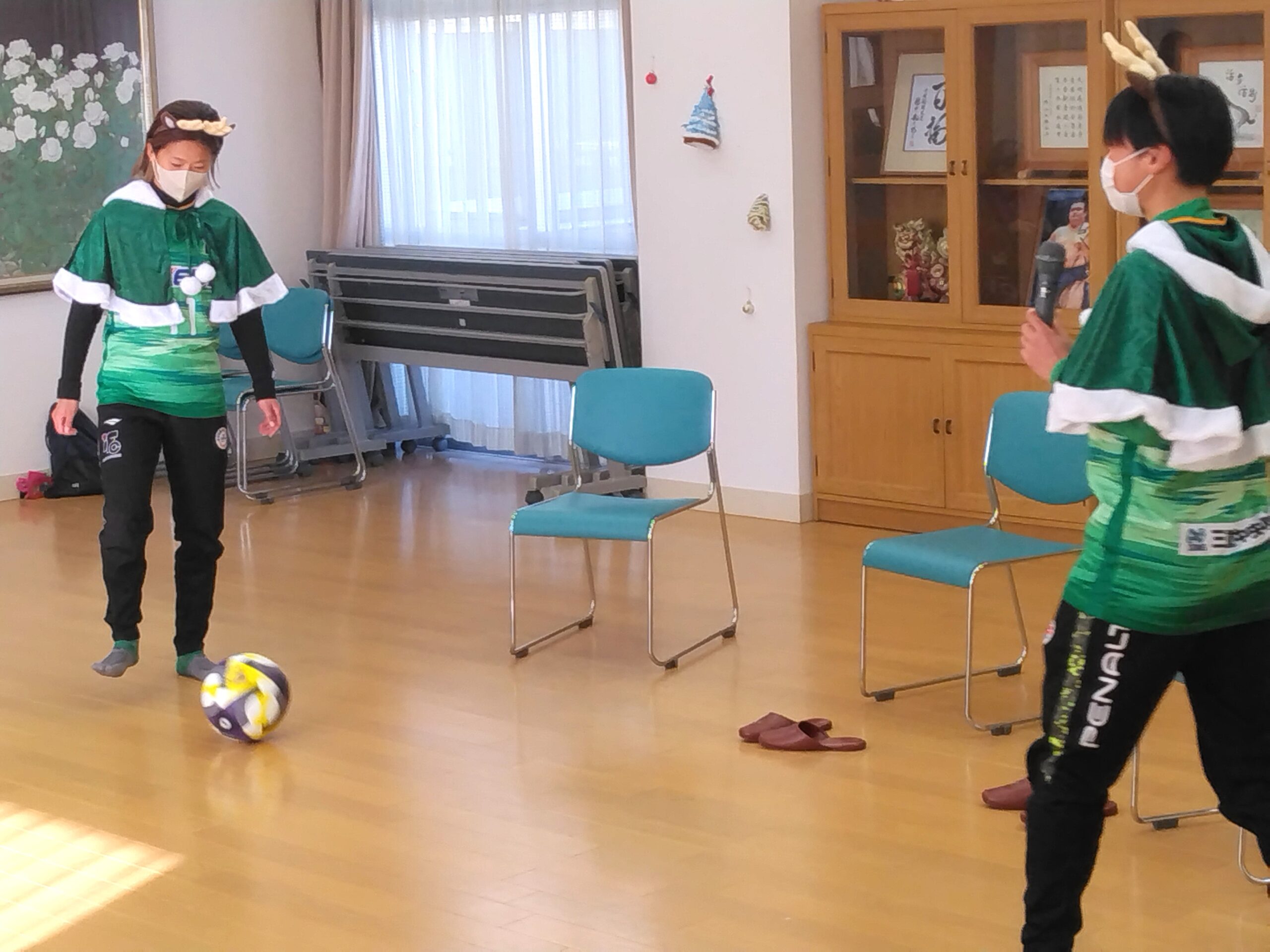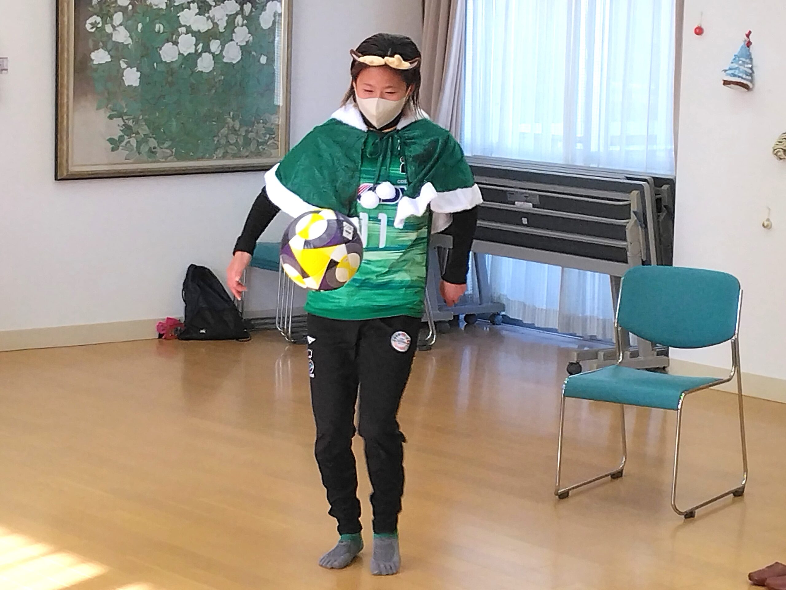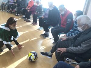 ご利用者の皆さんにリフティングの披露や、手足を使う運動を一緒に行なっていただきました。