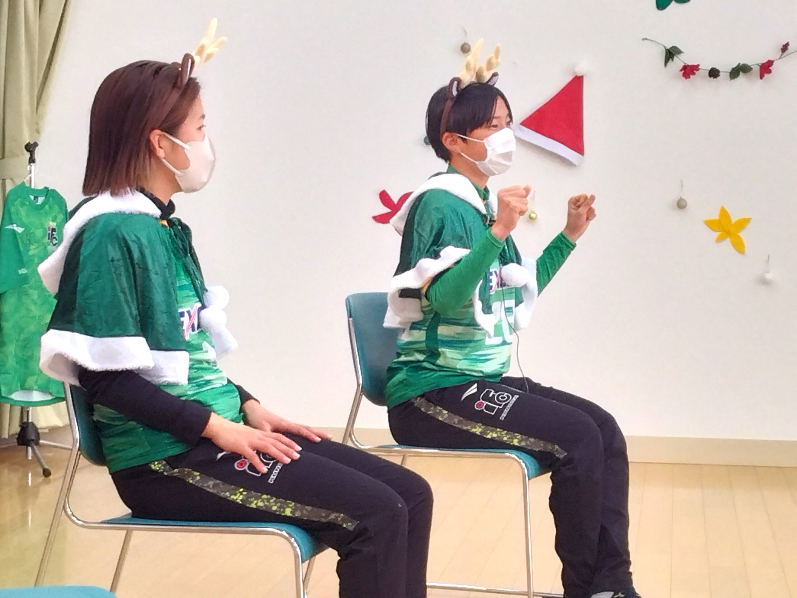 日本の女子サッカーなでしこリーグに所属する伊賀FCくノ一三重の正野瑠菜選手と常田菜那選手が、社会貢献活動「ホームタウン活動」の一環として梨ノ木園を訪問してくれました。