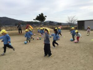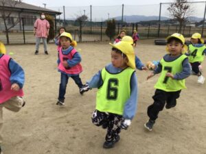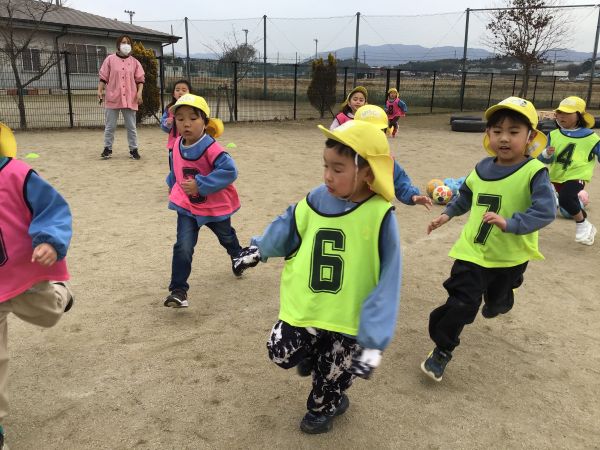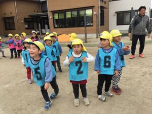 ※「がんばれー!」と、友だちを応援したり、「エイ、エイ、オー!」と、気持ちを一つにする姿が見られました。友だちと一緒にあそぶ楽しさや協力することの大切さなどが、あそびの中で気づきとなり、育ってきていることを感じる場面でした❤️