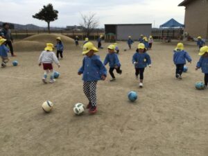 1月15日(木)めろん組(4歳児)さんが、「⚽どんぐりサッカー教室」に参加しました。