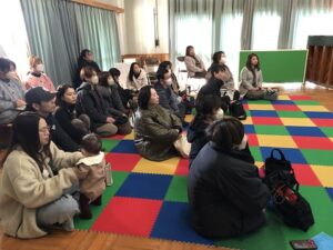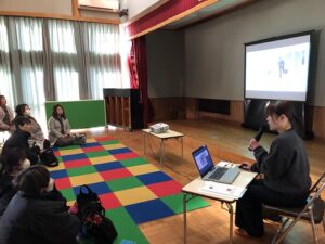 運動遊びを通して、こころ、ことばなど培われるということを話されました。講演を聞いて保護者の方から、遊びの大切さを改めて感じたという声も聞かれました。