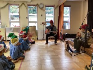 「赤鼻のトナカイ」や「ジングルベル」などのクリスマスソングを聞かせてもらいました。