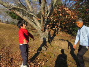 たくさんの葉っぱを見つけ「それー」