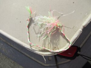 (しっぽ取りに使っている)紐を渡されました。腰につけて他の子の遊びを見ていると、ふいに後ろから紐を取られました。