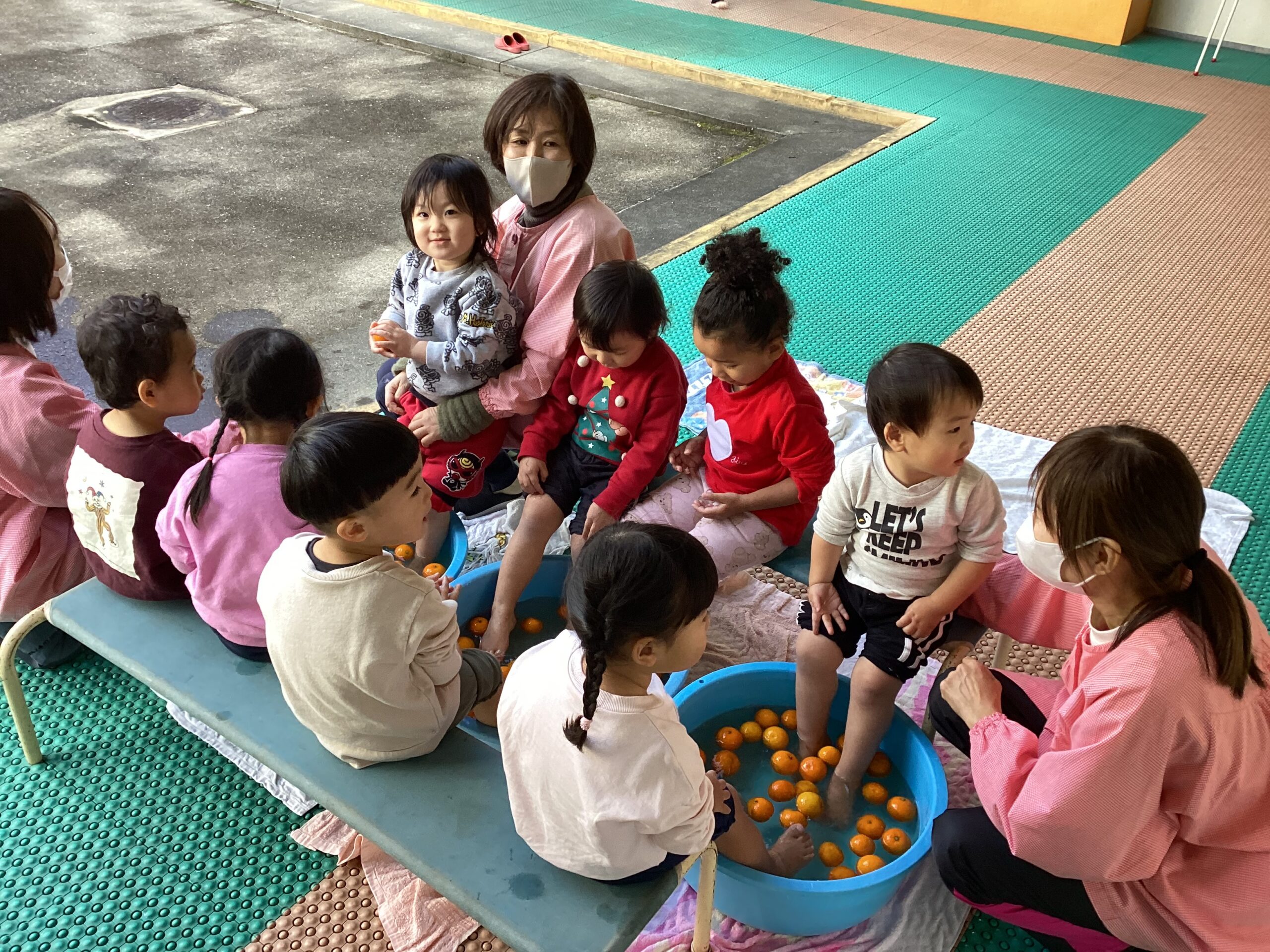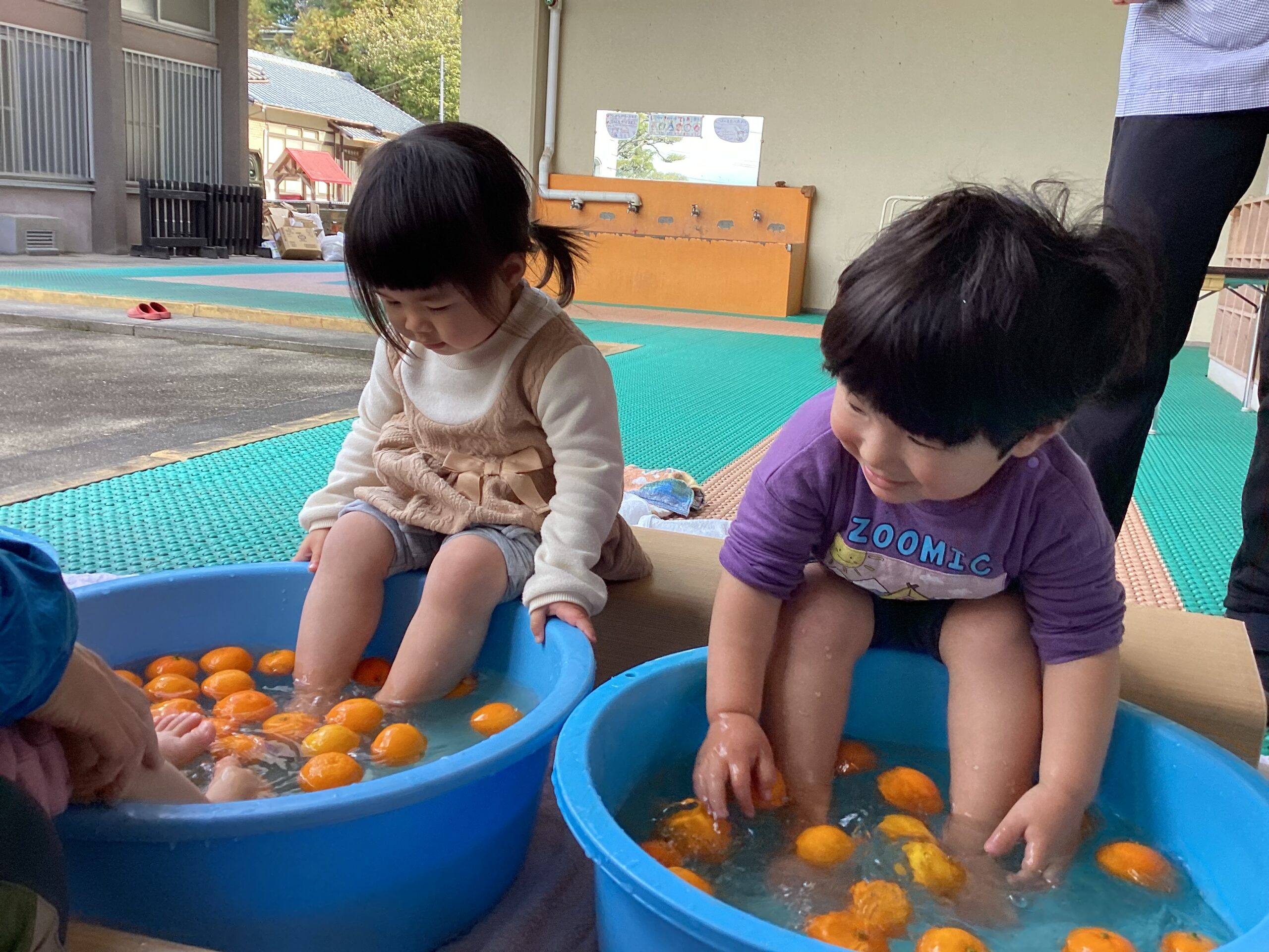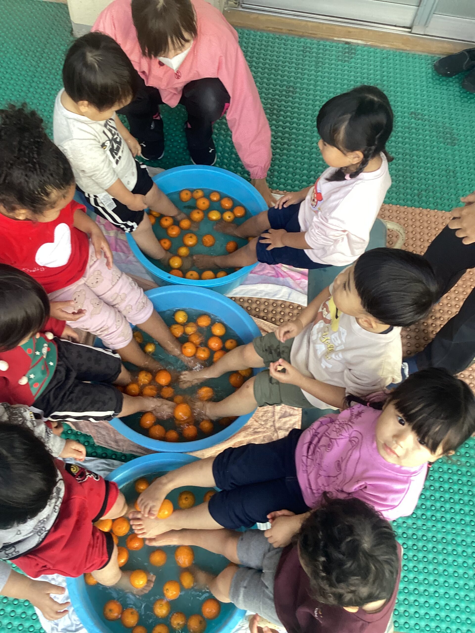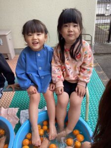 冬至でゆずの足湯をしました。