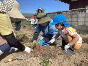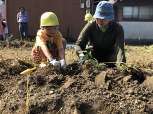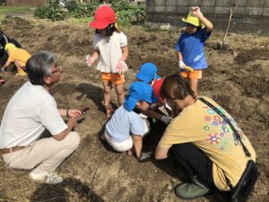 お芋を掘った後、畑では子どもたちの大好きな虫探しがはじまりました。
