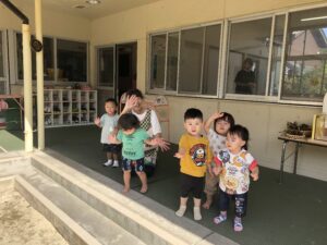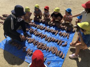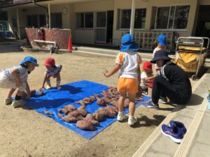 保育園に帰って大きい順にみんなでならべて、いくつ穫れたか数えました。