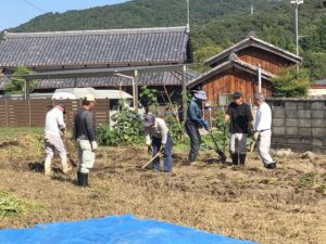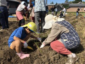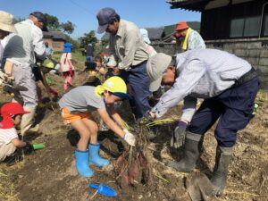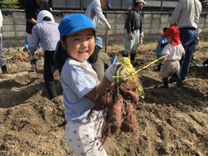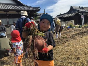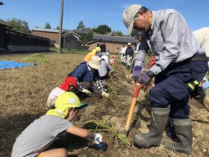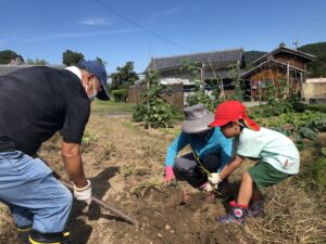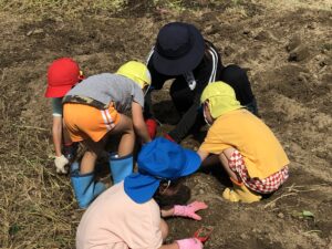 地域に方が朝蔓を上げて子どもたちが掘りやすいようにしてくださいました。