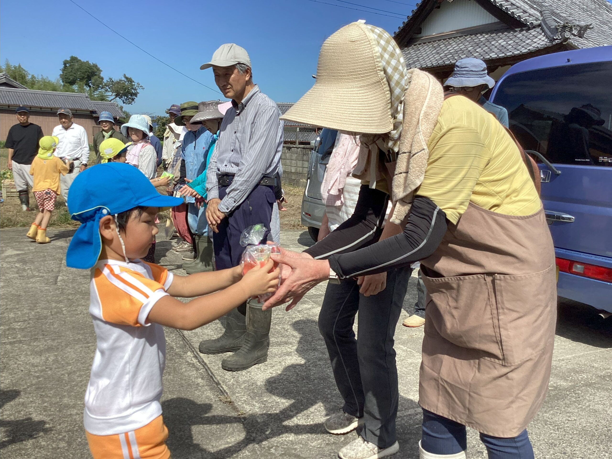 保育園に帰って大きい順にみんなでならべて、いくつ穫れたか数えました。