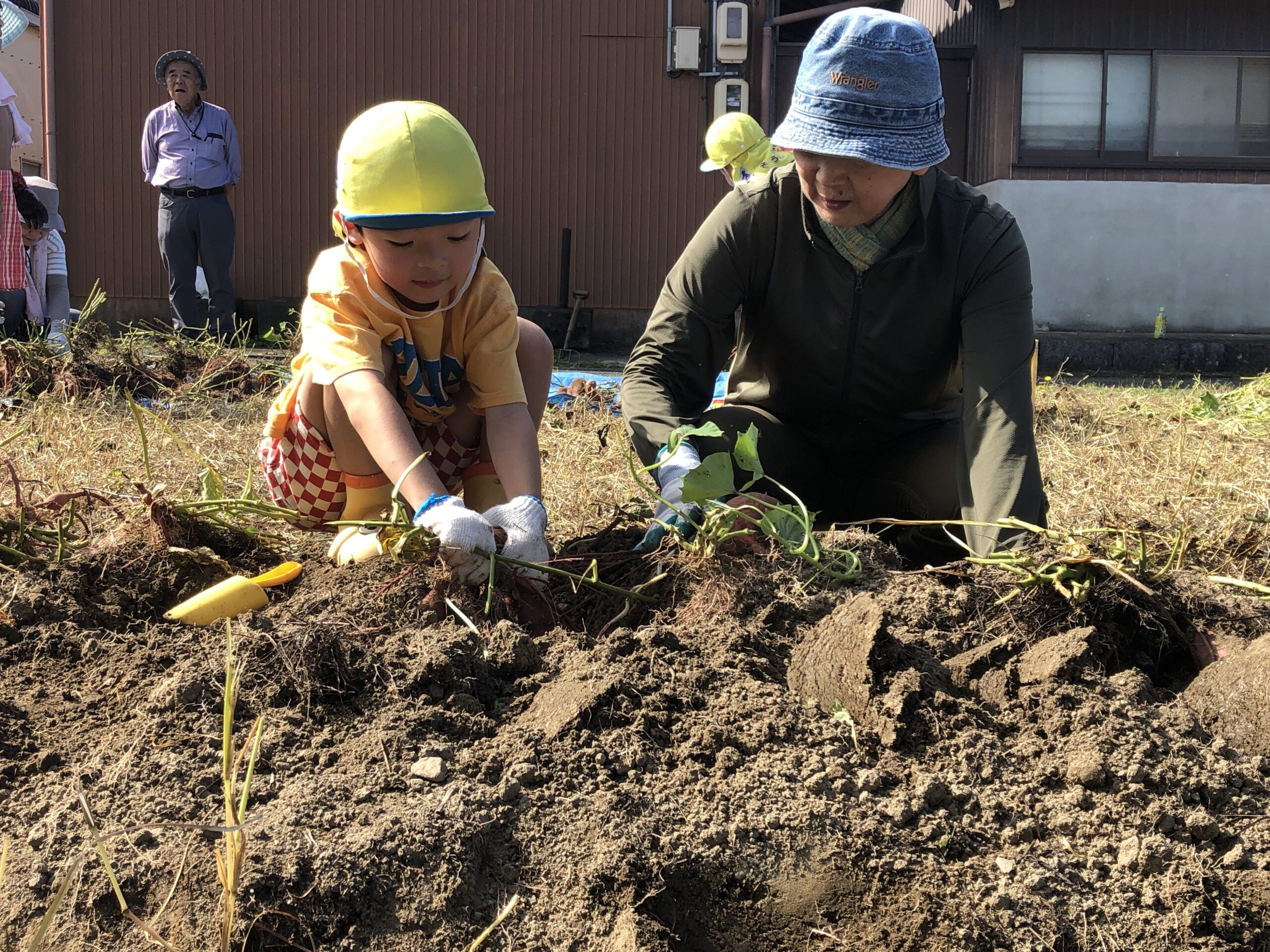 地域に方が朝蔓を上げて子どもたちが掘りやすいようにしてくださいました。