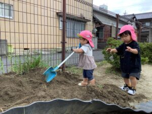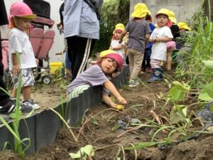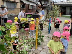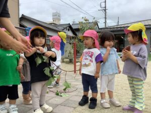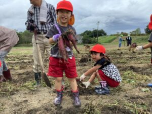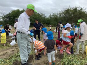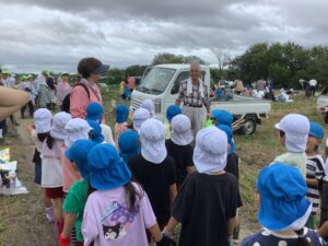 「明日が楽しみな里づくり委員会」の代表の勝島さんにごあいさつ~ 「おねがいします~」