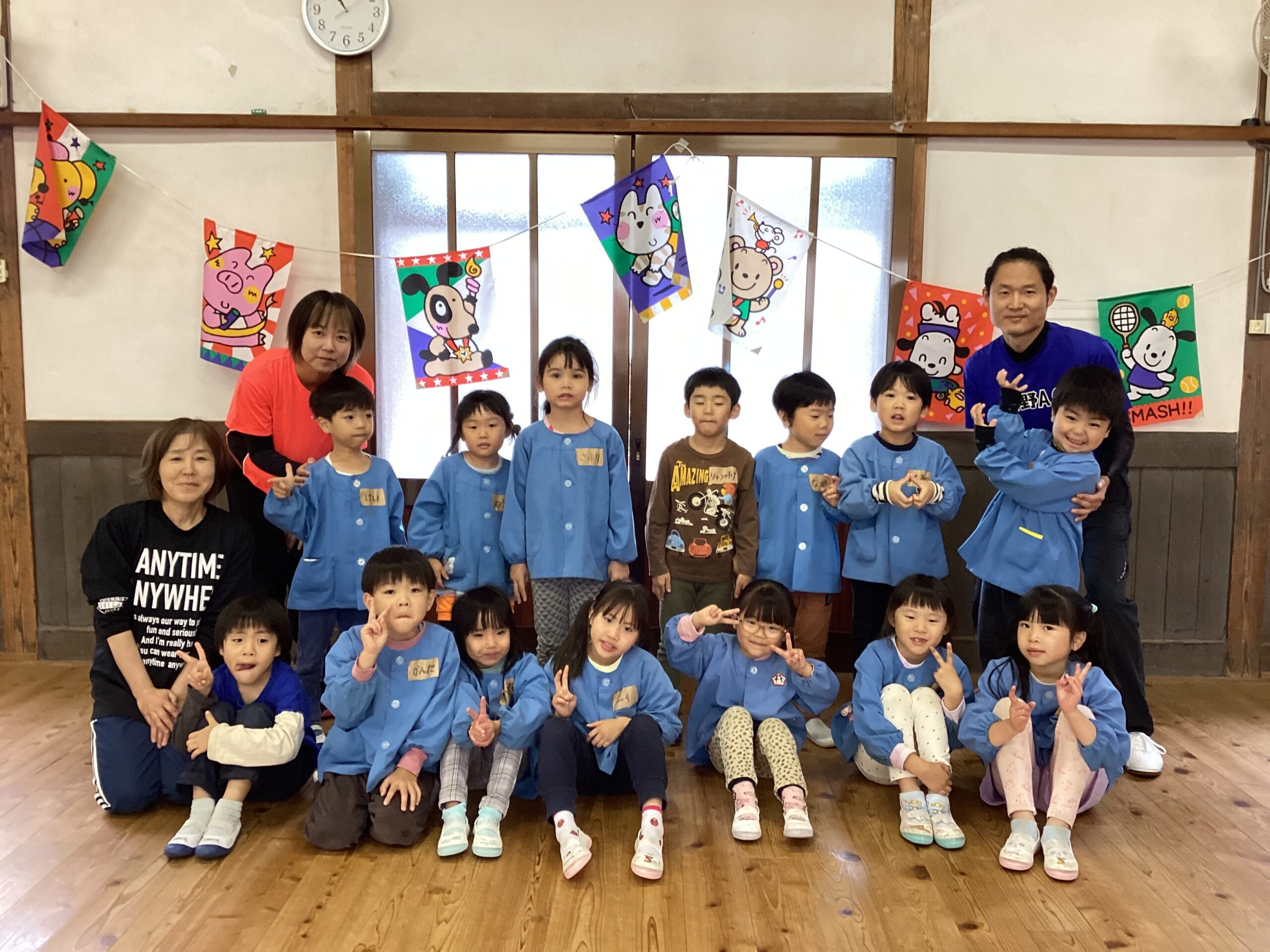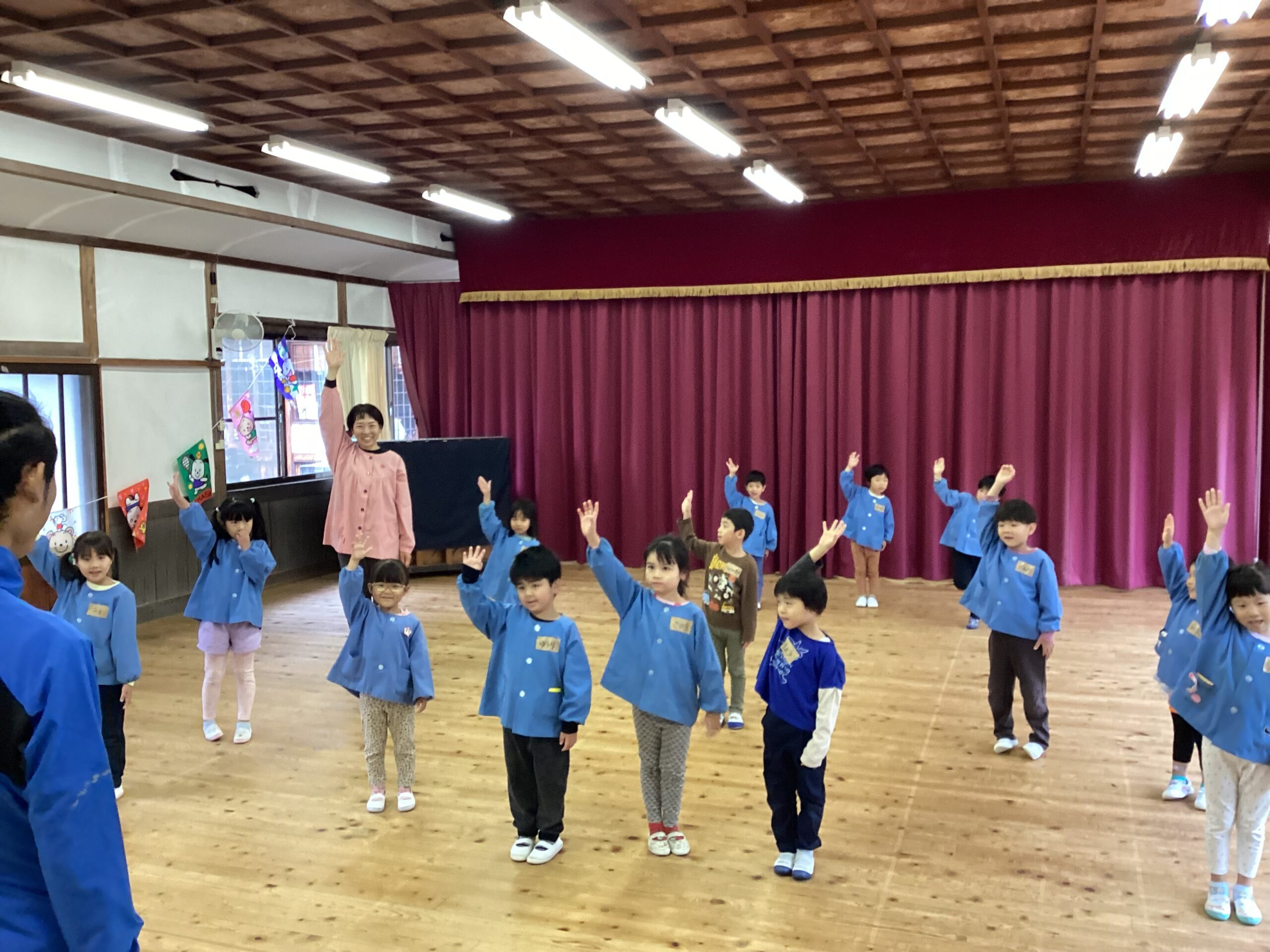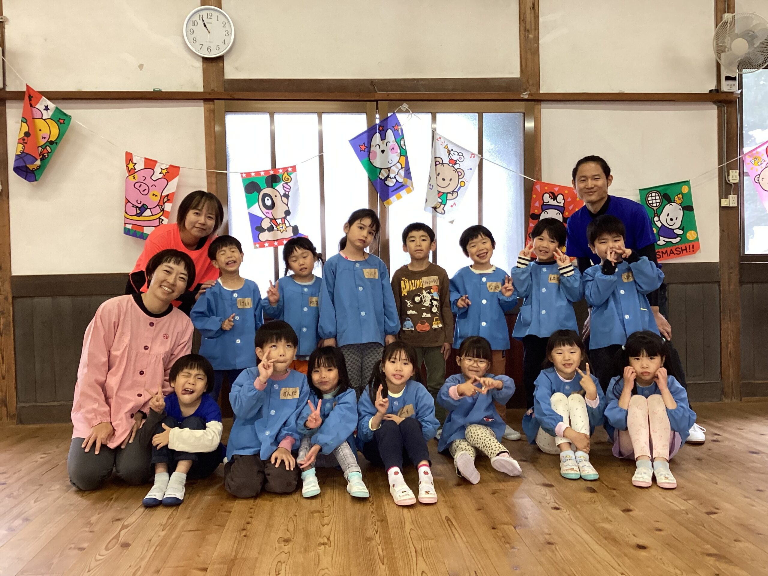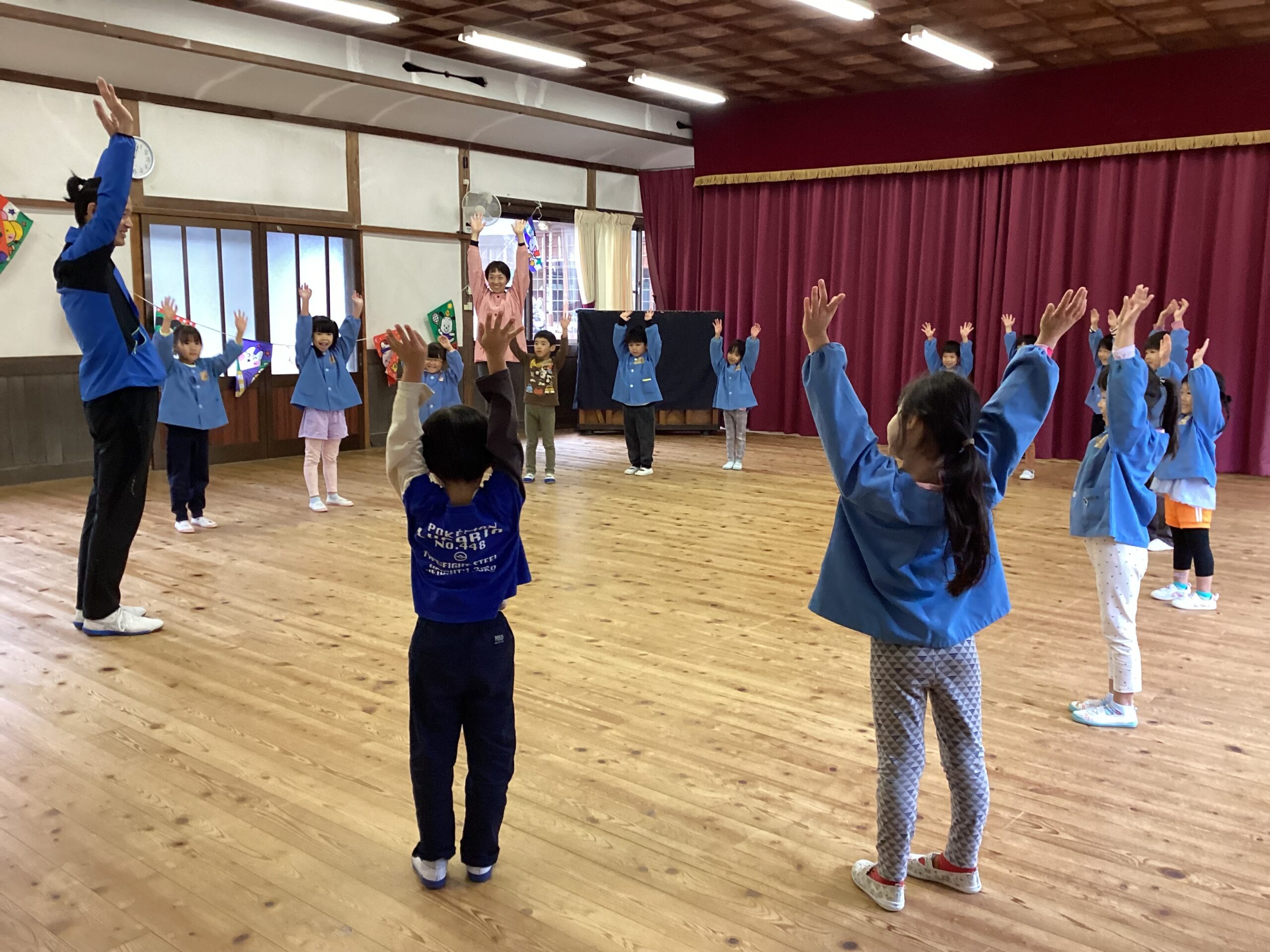 先日、講師の福永有貴さんの指導で年長児がコーディネーショントレーニングを体験しました。 「コーディネーショントレーニングはどんなことするのかな?」と楽しみにしていた子どもたち。 まずは準備体操、まねっこなど。 一人一つのテニスボール。うまくキャッチできるかな。転がってしまうよ~ フープでもテニスボールをキャッチ。 ムカデになって後ろの子をタッチ。なかなかむずかしい。 あー楽しかった。もっとしたいな。 ありがとうございました。