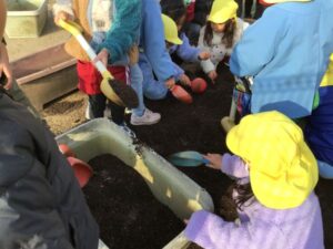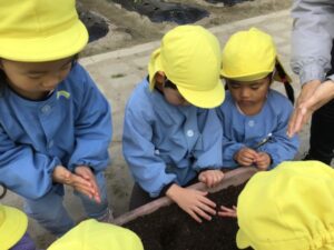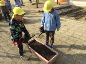 4歳児 めろん組さんが、ちゅうりっぷの球根植えをしました😊