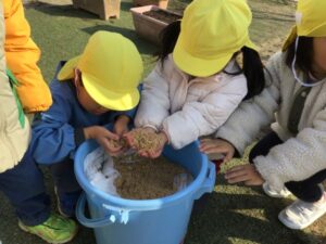 先生から、「これは、ちゅうりっぷの球根だよ」と、教えてもらうと、「へぇ~🫥」と、興味津々、さらに、観察が始まりました。