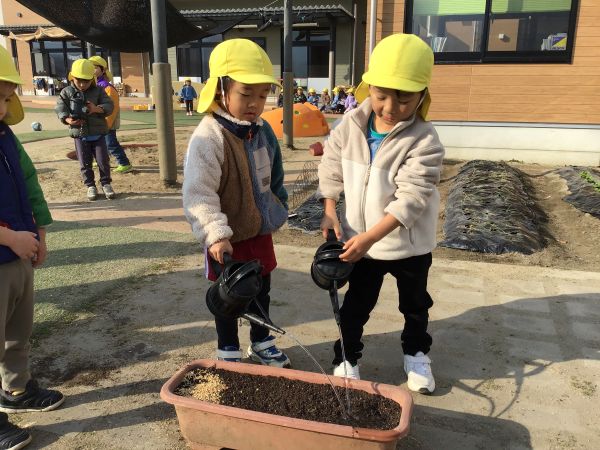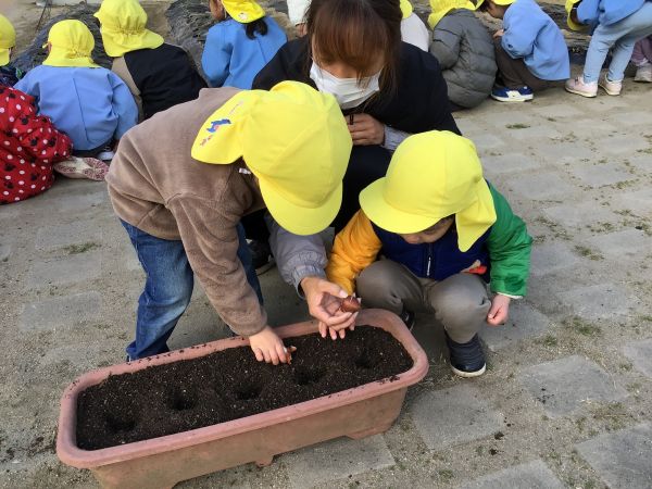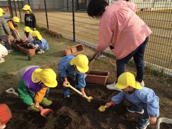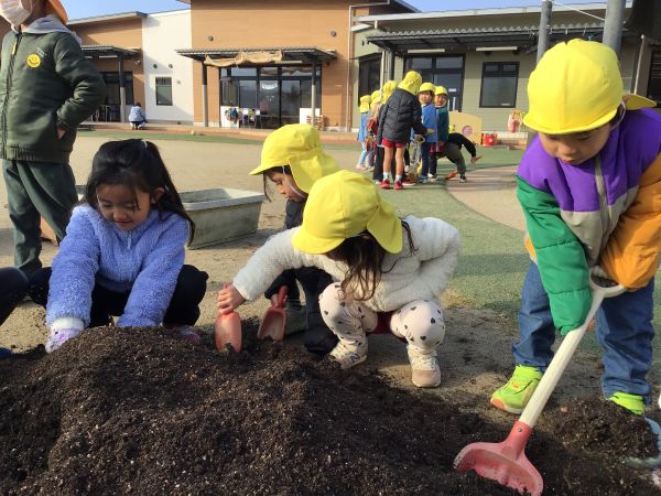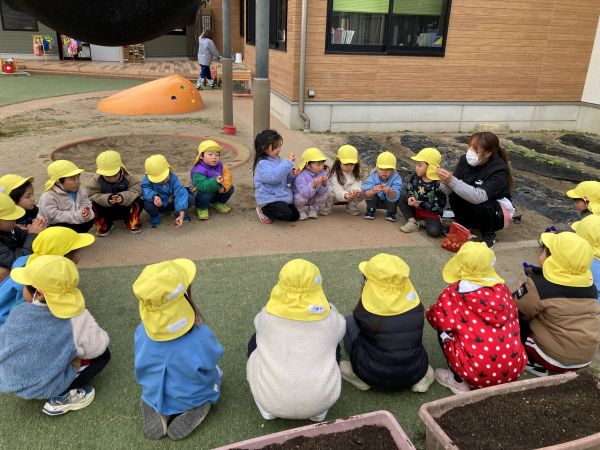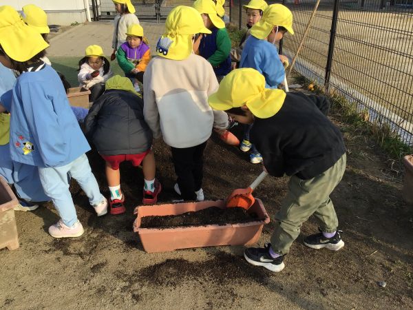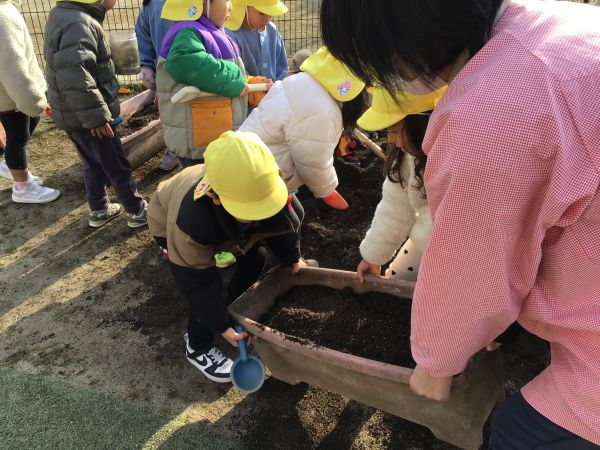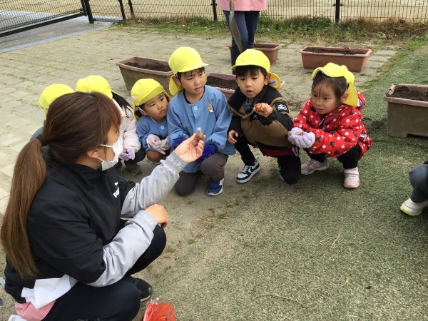 4歳児 めろん組さんが、ちゅうりっぷの球根植えをしました😊