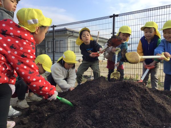 ①みんなで土作りからスタートです。