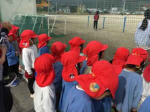 小学校の前を通ると・・・休み時間で、お兄さん、お姉さんがいっぱい遊んでいました。「こんにちはー😊」