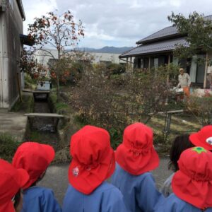「あっ!ここには柿があるよ😀」と、話をしていると、おじさんが出てきて「この柿は、渋柿だから食べられないんだよ」と、教えてくれました。