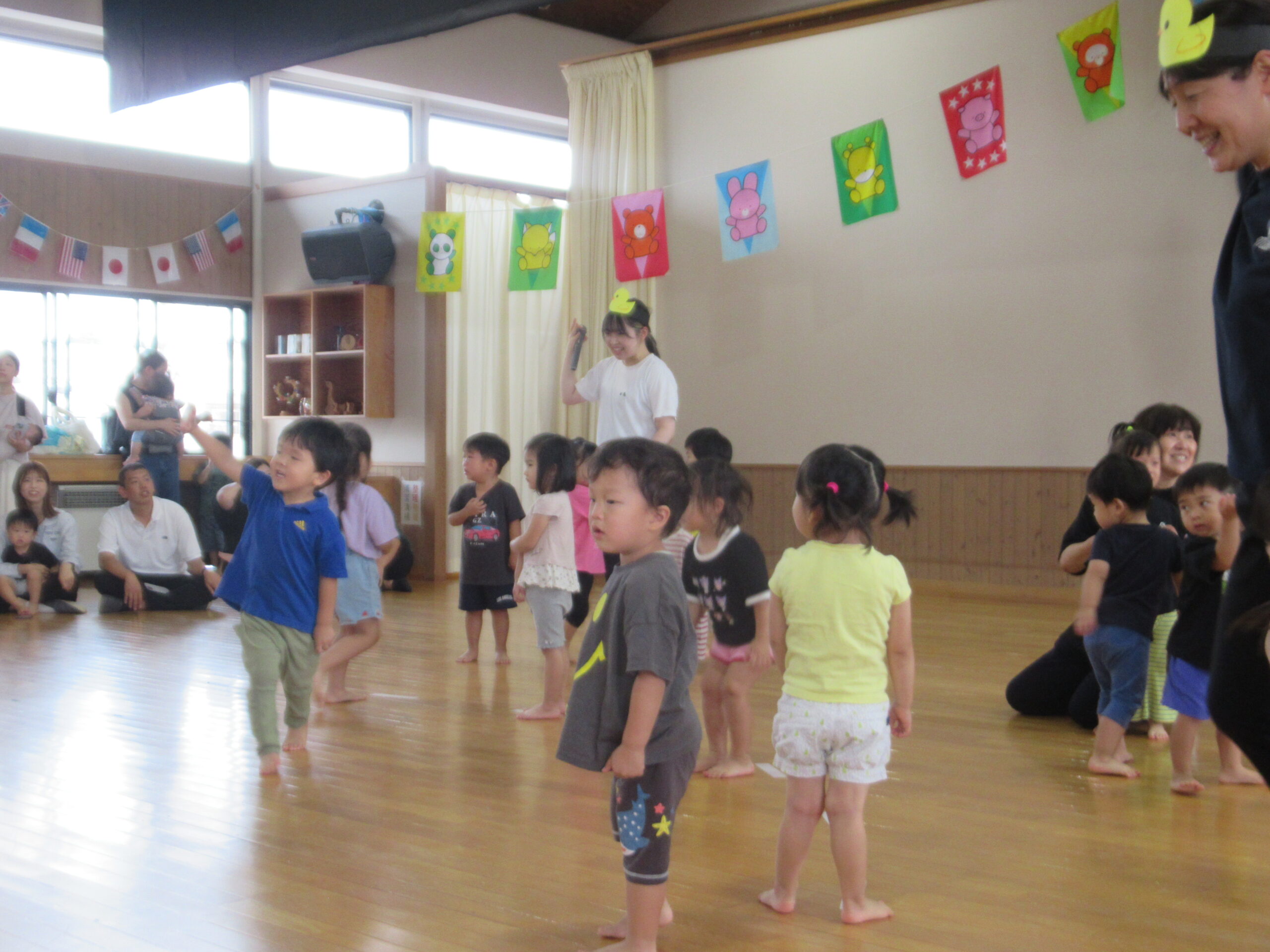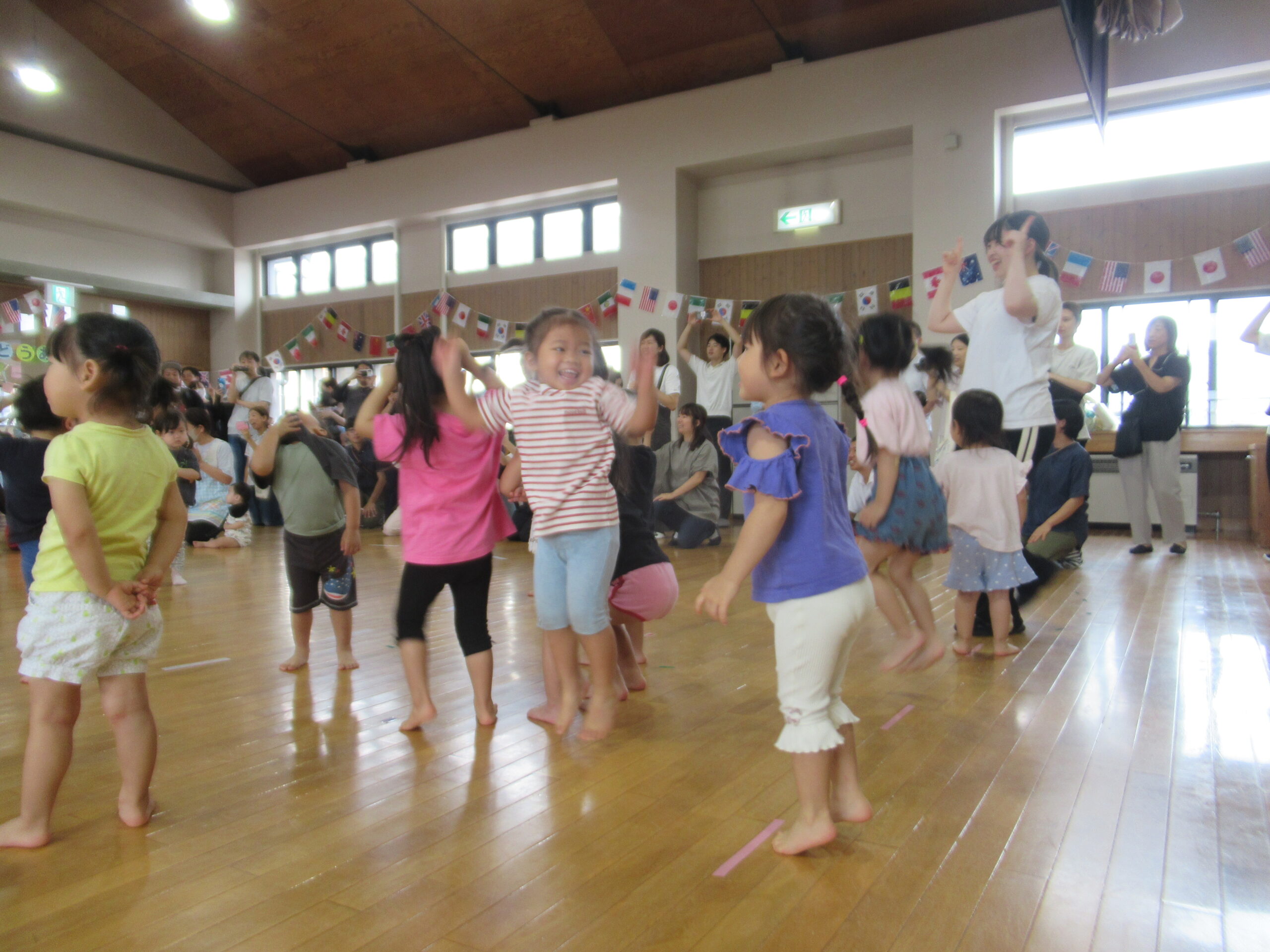 お家の方が沢山参加していただきとても賑やかで楽しく、微笑ましい運動あそび会となりました。ありがとうございました。