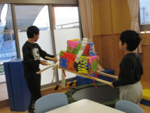 大玉を転がしたり、友だちと協力しておみこしを運んだりして