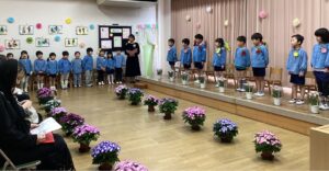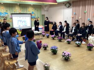 みんなで「すみれぐみさん、そつえんおめでとう」