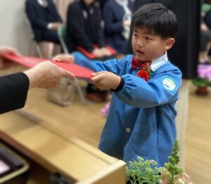 保育証書を手にする姿は