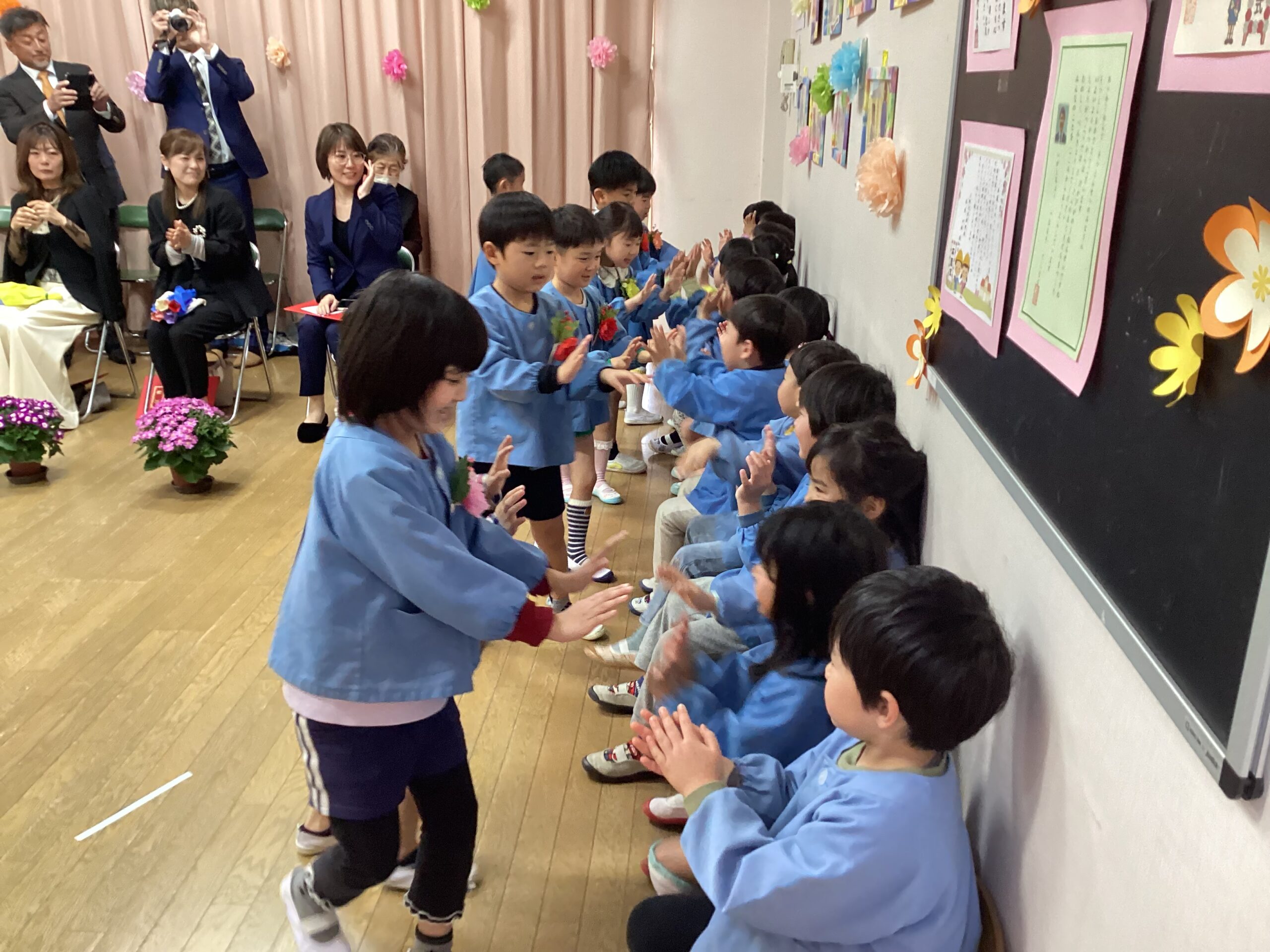 みんなで「すみれぐみさん、そつえんおめでとう」