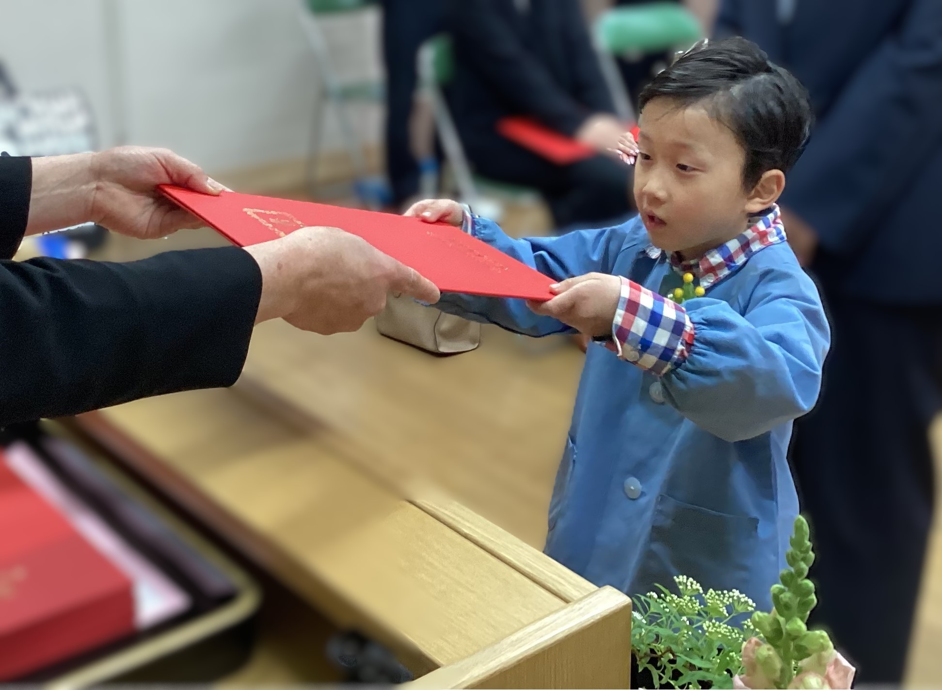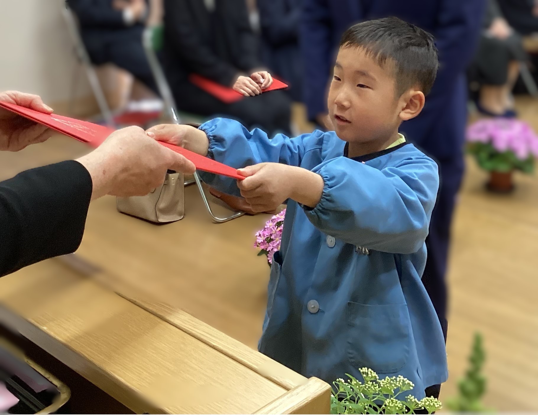 保育証書を手にする姿は