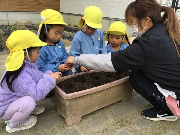 ちゅうりっぷの球根を植えたよ(4歳児 めろん組)